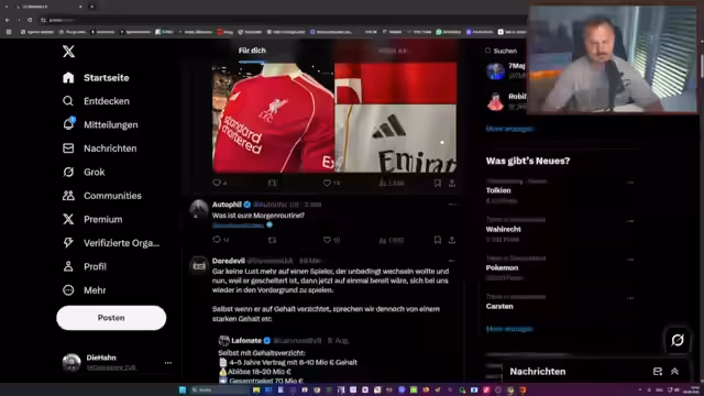 02:19:12Es kursieren Gerüchte, dass der Spieler Woltemar im Sommer nicht zum FC Bayern wechseln könnte, um Druck auf den Verein auszuüben. Der Streamer bewertet dies als Käse, da eine Druckausübung durch Spielerlager in dieser Form wenig sinnvoll ist und keine gute Verhandlungsposition darstellt. Der Spieler müsste erst seine Leistung bestätigen und hat überdies nur ein halbes Jahr in der Profi-Liga gespielt, was einen hohen Preis für einen Transfer in Frage stellt.