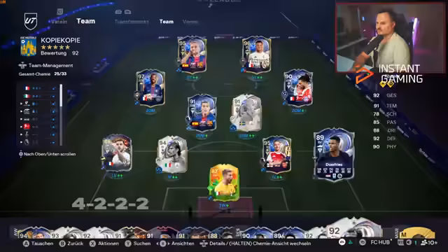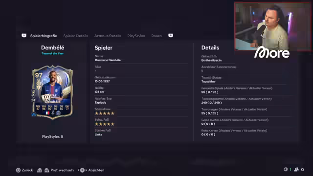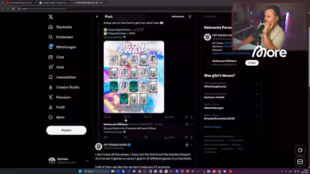 06:10:06Der Streamer zeigte sich begeistert von den Evos, die für ihn das Spiel FC 26 retteten. Er präsentierte ein Team, bei dem durch Evos perfekte Karten-Kreationen entstanden, die es so auf dem Markt nicht zu kaufen gebe. Diese Evos seien absoluter „Sagnagel“ für das Spiel, da sie jedem Spieler ermöglichen, seine Teamidee perfekt umzusetzen. Er kritisierte aber auch, dass dies das Spiel teurer mache, da man sich seine Traumkarte durch die Evos quasi selbst erschaffen müsse.