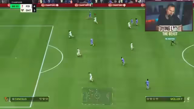02:08:51Nach einerPause wegen technischer Probleme mit einem Controller, der 'die ganze Zeit vibriert', wird die Taktik und Spielaufbau erneut thematisiert. Die Unzufriedenheit mit dem Querlegen des Balls ist offensichtlich, da die Spieler aufhören zu laufen, was zu vergebenen Torchancen führt. Der Streamer bewundert einen 'Wahnsinnsball' von Modric, den er sich von KDB wünschen würde, und beklagt, dass diese Bälle konsequent verschwendet werden, was zu Straftoren führt.