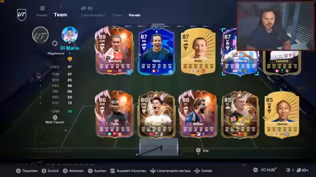 03:15:29Es werden positive Erfahrungen mit dem Spieler Makelele und der aktuellen Formation geteilt. Makelele wird als 'krank' und 'Chucky Monster' beschrieben, besonders beeindruckend ist sein Dribbling und seine defensive Präsenz, obwohl seine Stats nicht überragend sind und er auf Basic spielt. Es wird erwähnt, dass er sich deutlich bulliger und mächtiger anfühlt als andere Spieler mit ähnlichen Stats. Die Formation, die jetzt gespielt wird, scheint gut zu funktionieren und macht Spaß, auch wenn in einer vorherigen Partie zwei Spieler auf 'falsche 9' für Probleme sorgten. Die Laufwege der Spieler werden als hundertmal besser beschrieben. Es wird auch die Frage aufgeworfen, ob Makelele häufiger in Icon-Packs enthalten war, da viele Spieler ihn besitzen. Die Effektivität des 'R1-Balls' wird als 'völlig wild' bezeichnet. Der Spieler 'Sirloat' wird ebenfalls positiv hervorgehoben, und es wird gehofft, dass er ein Upgrade erhält, da dies seine Karte 'richtig sexy' machen würde. Es wird die Rolle von Sirloat als 'vordere Anspielstation' in der aktuellen Formation als 'Ultra' gut empfunden.