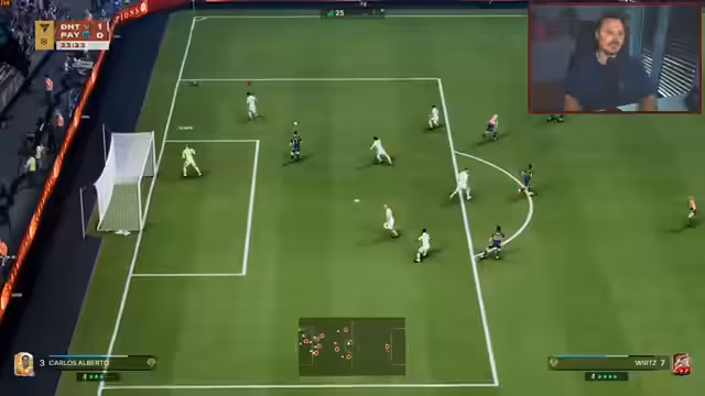 01:31:03Der Streamer ist zunehmend frustriert über die Spielmechaniken und das weiterhin nicht funktionierende Teammanagement. Er kann keine Wechsel vornehmen oder Taktiken anpassen, was ihn in wichtigen Spielsituationen behindert. Trotz zahlreicher Schüsse und hoher Expected Goals verliert er Spiele, da gegnerische Torhüter übermenschliche Paraden zeigen und seine eigenen Spieler hundertprozentige Chancen vergeben. Er kritisiert die übertriebene Geschwindigkeit und Agilität gegnerischer Spieler, selbst mit niedrigeren Pace-Werten, während seine eigenen Verteidiger mit 87 Pace nicht mithalten können. Die Dreiecks-Pässe der Gegner kommen perfekt an, während seine eigenen Pässe oft im Aus landen, selbst mit Spielern, die gute Pass-Stats haben. Er entscheidet sich schließlich, Bonny aus dem Team zu nehmen, da er mit dessen Leistung absolut unzufrieden ist und die Niederlagen auf die mangelnde Effizienz seiner Spieler zurückführt.
