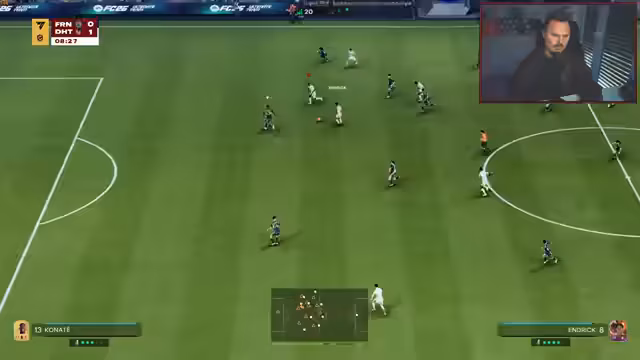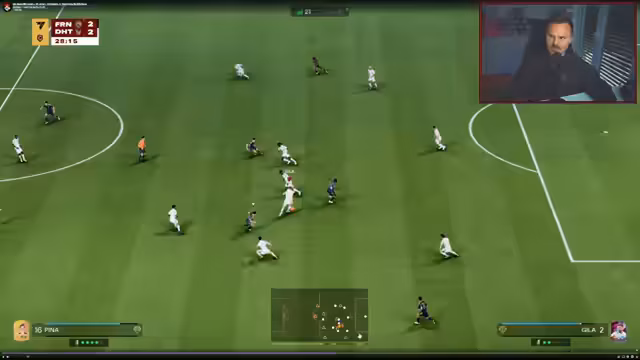 03:11:05Der Streamer kämpft mit erheblichen Schwierigkeiten im Spiel, insbesondere gegen Gegner, die das Spiel deutlich besser beherrschen. Er beschreibt die Situation als 'Clusterfuck' und bemerkt, dass seine Kontertaktik defensiv nicht aufgeht, da seine Mittelfeldspieler zu oft fehlen. Trotz des Versuchs, auf kurze Pässe und eine hohe Tiefe zu setzen, stehen die Gegner aggressiv in seiner Hälfte. Die Leistung des Spielers Bonny wird als inkonsistent beschrieben, da er sich einerseits gut spielt, andererseits aber nicht effektiv in Szene gesetzt werden kann. Der Streamer fühlt sich von den Gegnern 'an die Wand gespielt' und kritisiert die scheinbar übermenschliche Geschwindigkeit der gegnerischen Spieler. Die Frustration über die mangelnde Durchsetzungsfähigkeit seiner Spieler und die Schwierigkeit, Pässe zu unterbinden, ist deutlich spürbar. Er überlegt, seine Taktik in der Halbzeit umzustellen, sofern dies technisch möglich ist.