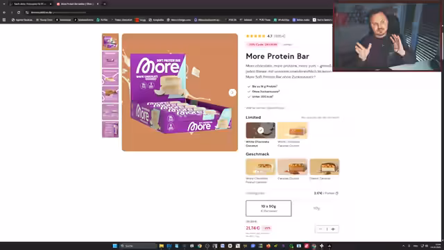 03:27:43Der Streamer bewirbt die Plattform Instant Gaming, die Spiele für PC, PlayStation, Xbox und Nintendo zu günstigen Preisen anbietet, inklusive Vorbestellungen. Er erwähnt das kommende Solo-Leveling-Spiel als Beispiel. Zudem weist er auf die Möglichkeit hin, Guthabenkarten und FC-Points zu erwerben. Anschließend spricht er über seine Partnerschaft mit More Nutrition, die ursprünglich auf eine Woche begrenzt war, aber verlängert wurde. Er empfiehlt ein Proteinpulver mit dem Geschmack 'Vanilla Chocolate Chip Cookie', das seiner Meinung nach exakt wie Cookies-Eis schmeckt. Er lobt die Qualität der Produkte, kritisiert jedoch das FOMO-Marketing von More Nutrition und ESN, bei dem Produkte künstlich verknappt werden, um Kaufanreize zu schaffen. Er betont, dass er solche Marketingstrategien nicht unterstützt, aber die Produkte selbst für gut befindet und die aktuelle Rabattaktion als Gelegenheit sieht, sich einzudecken.