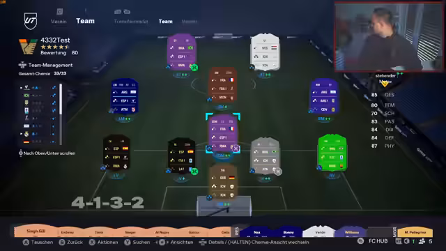 01:31:01Es wird über das optische Design von Spielerkarten diskutiert, insbesondere über Goretzka, dessen Design als 'eher meh' empfunden wird, im Gegensatz zu Di Maria, dessen Design im Argentinien-Trikot als 'richtig nice' beschrieben wird, da es sich abhebt. Die Wichtigkeit von Chemiepunkten wird hervorgehoben, wobei zwei Vereinspunkte für Di Maria vorteilhaft wären, da er automatisch einen Chemiepunkt über seinen Verein erhält und keine gut verlinkbaren Spieler im Verein hat. Dies würde ihm helfen, in einem argentinischen Team auf zwei Chemiepunkte zu kommen, was als 'ganz nett' bezeichnet wird.