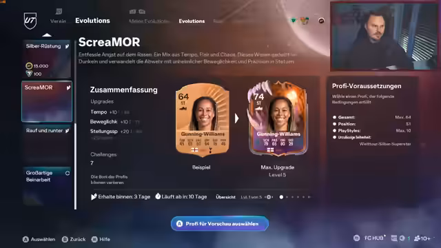 00:56:06Die Evolutionen im Spiel werden diskutiert, wobei der Streamer die Preisgestaltung als fair empfindet, auch wenn sie von einigen als zu teuer kritisiert wird. Er argumentiert, dass die Möglichkeit, sehr gute Innenverteidiger durch Evolutionen noch besser zu machen, den Preis von 100.000 Münzen rechtfertigt, da das Upgrade erheblich ist. Er betont, dass es keine 'No-Brainer'-Evolutionen sind, bei denen man ohne Nachzudenken investiert, sondern eine bewusste Entscheidung, ob das Upgrade den Preis wert ist. Er vergleicht dies mit teuren Special-Karten auf dem Markt, die oft mehr als 100.000 Münzen kosten würden.
