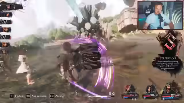 02:12:57Der Stream konzentriert sich auf das Gameplay, insbesondere auf das Kämpfesystem. Der Spieler analysiert verschiedene Fähigkeiten, wie z.B. 'Flink', die die Reihenfolge der Züge beeinflusst, und Effekte wie 'Perfektion', die zusätzlichen Schaden verursachen. Die Herausforderungen des Kampfsystems werden betont, da Fehler bestraft werden und der Spieler ständig konzentriert agieren muss, um Gegner, die wie 'eine Göttin' kontern, zu besiegen. Charaktere müssen strategisch aufgerüstet und Fähigkeiten müssen kombiniert werden, um effektiv zu sein.