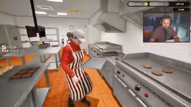 00:25:50Nach einer Einführung ins Gameplay startet der Streamer das Restaurant. Er entscheidet sich bewusst, ohne reale Geldeinsätze zu spielen und stellt seine Spielweise vor, die auf Grinden und Craften setzt. Nach dem Start des Betriebs stellt er jedoch fest, dass die Anfangsbeliebtheit des Restaurants sehr schlecht ist. Die ersten Kunden bestellen Hamburger, was zu einer ersten chaotischen Phase führt, in der der Streamer mit der Zubereitung und dem Zeitmanagement kämpft. Die ersten Gehälter für Mitarbeiter werden fällig und belasten die Finanzen erheblich.