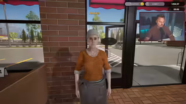 00:44:07Um den Betrieb zu professionalisieren, beschließt der Streamer, einen Azubi einzustellen. Er wählt die Figur "Annika" aus und weist ihr die Rolle des Busser zu, der für das Einsammeln von benutzten Tabletts und Geld zuständig ist. Er übergibt ihr ein Walkie-Talkie für die Kommunikation. Gleichzeitig wird der finanzielle Druck deutlich, als der Streamer Bestellungen für neue Materialien wie Papier, Fleisch und Becher aufgibt, die sofort die Kasse belasten und zu einem Verlust von 300 Dollar führen.