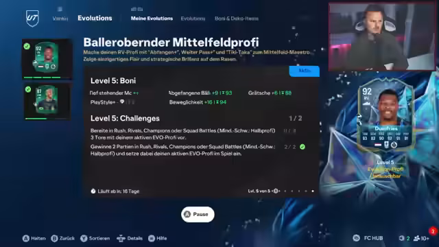 02:57:36Ein zentraler Teil des Streamings ist der Evo-Crafting-Prozess für den Spieler Talisca. Es werden verschiedene Evo-Varianten wie 'Shadow Striker', 'Playmaker' und 'Control Lengthy' detailliert analysiert und die jeweiligen Stats und Playstyles verglichen. Es wird als ein 'Gamble' bezeichnet, der aber lohnt. Der Streamer entscheidet sich für eine Variante und erwähnt den Prozess, das Crafting mit Non-Res-Spielen zu refinanzieren und es als machbar für jeden darzustellen.