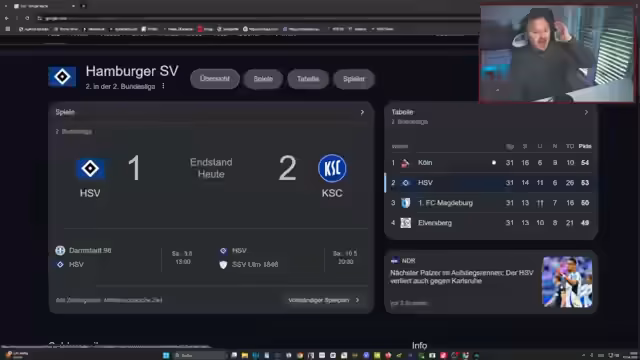 00:23:18Es folgt eine ausführliche Analyse der aktuellen Situation des Hamburger SV in der 2. Bundesliga. Der Streamer zeigt sich schockiert von der Leistung und dem Abstiegskampf des HSV. Er kritisiert die Mannschaft scharf und stellt fest, dass selbst mit Schützenhilfe der Aufstieg unwahrscheinlich erscheint. Es wird der Trainerwechsel thematisiert und diskutiert, ob dieser die Situation verbessern kann oder ob die Probleme tiefer liegen. Die statisch gesehen starke Saison des HSV wird als rätselhaft und absurd beschrieben.