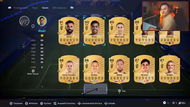 01:51:59Der Streamer versucht, sein Team durch das Nutzen von Evolution-Karten und das Platzieren von Spielern auf optimalen Positionen zu verbessern. Er experimentiert mit der Karte von Modric, die ihm gefällt, ist sich aber unsicher über den Platz, da ihm Pace fehlt. Gleichzeitig kämpft er mit dem Ziel, seine Icons in der richtigen Liga und Position zu platzieren, was ihm aufgrund der Einschränkungen der Chemie-Regel Schwierigkeiten bereitet.