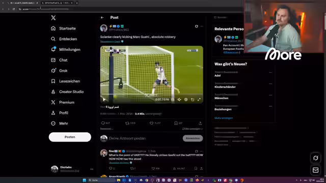 Es wurden mehrere umstrittene Spielszenen im Fußball beleuchtet. Zudem wurde scharfe Kritik an Medien vorgebracht, die Narrative erzeugen und den Sport für Klicks instrumentalisieren. Der Inhalt einer neuen „Evo“-Karte für FIFA wurde vorgestellt. Ein Stream musste jedoch vorzeitig beendet werden, da gesundheitliche Beschwerden auftraten.