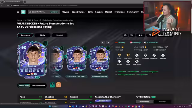 00:44:32Die Unterhaltung wechselt zum Thema FIFA-Inhalte, insbesondere zur neuen „Evo“-Karte von Enric. Der Streamer präsentiert die gezogene Karte und gibt einen ersten Eindruck von ihren Eigenschaften. Er beschreibt den Card Body-Type als sehr spielstark und interessant, der viel Spaß machen könne. Er rät dazu, die Karte zunächst nicht sofort in eine Evo zu integrieren, sondern sie erst einmal im Verein zu behalten und zu evaluieren, bevor man eine Entscheidung über ihre weitere Entwicklung trifft.