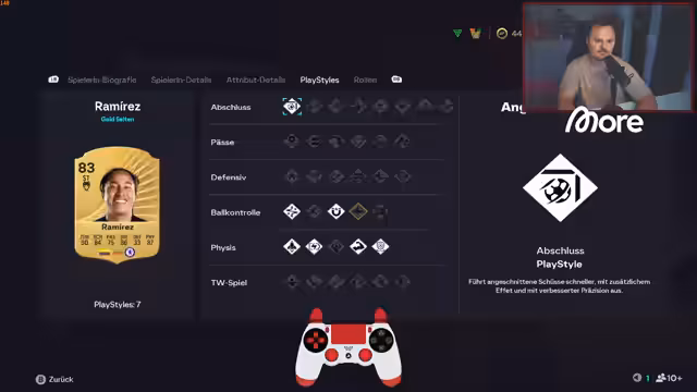 00:49:37Der Streamer hat es geschafft, eine Partie zu beenden, obwohl die Bezeichnung „Kloatschiten“ als „komplett beschissen“ empfunden wird und Assoziationen mit „Scheiße“ weckt. Es wird über die Evolution eines Spielers gesprochen, der drei Partien benötigt, um am Ende einen Quicksell zu erhalten. Die Playstyles Schnittstellen, Pass, Technical und Trickstar werden diskutiert, wobei der Streamer überlegt, welchen Spieler er als Nächstes in die Evolution steckt. Es wird befürchtet, dass ein Spieler durch die falsche Reihenfolge der Evolutionen „kaputt gemacht“ werden könnte, da er dann nicht alle gewünschten Playstyles erhält. Trotzdem plant der Streamer, einen Gonzalo zu kaufen, der keine Playstyles hat, um ihm diese zu geben, was als gute Basis angesehen wird. Die maximale Anzahl von Playstyles, die ein Spieler erhalten kann, wird diskutiert, wobei das Maximum bei 10 liegt, aber nur 5 durch Evolutionen erworben werden können.