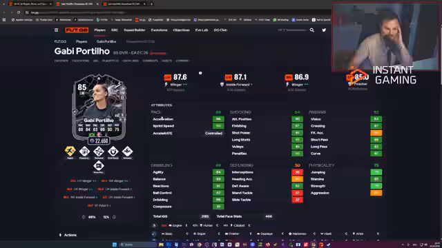 02:34:10Es wird eine neue Spielerkarte mit den Werten 88, 88, 83, 86, 50, 75 und PlayStyles wie Finesse, Technical, First Touch, Tricks und Press Proven analysiert. Die Karte wird als Stürmerin mit Raserei beschrieben und als 'super aussehend' und 'eklig Potenzial' bewertet. Es wird die Frage aufgeworfen, warum diese Spielerin ein PlayStyle-Plus-Upgrade erhält, während andere, wie Sirloot, nicht. Insbesondere Gabi wird als vielversprechend angesehen. Die Möglichkeit eines +2-Upgrades würde ihre Werte auf 90, 86, 85, 88, 77 anheben, was als 'heftig' bezeichnet wird. Die Karte wird als 'definitiv mitzunehmen' eingestuft, insbesondere wegen des PlayStyles Raserei, Finesse, Technik, First Touch, Tricks und Press Proven, die als 'richtig böse' gelten. Die Diskussion dreht sich auch um die Entscheidung zwischen dem Aktualisieren von Ark oder Battlefield, wobei die Wahl auf Battlefield fällt, um die neue Map zu erkunden. Es wird Bedauern über die Entwicklung von Spielen nach Patches geäußert, die ursprünglich gut waren, aber durch Updates verschlechtert wurden.