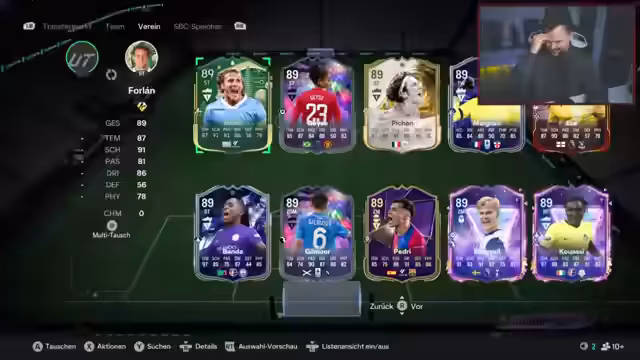 02:48:55Es wird überlegt, ob man den Spieler Malen halten oder verkaufen soll, wobei tendenziell zum Verkauf geraten wird, es sei denn, man möchte ein wenig gambeln. Verschiedene Spieler werden kurz bewertet, darunter Cesco, Nunez, Giraside und Barnes. Der Verkauf von Min Son wird erwähnt, der gezogen wurde und von den Werten her an Totti erinnert, aber Upgrades schwierig sein werden. Es wird überlegt, ob man ein oder zwei Partien mit ihm spielen soll. Verschiedene Playstyles und ihre Auswirkungen auf Spieler werden diskutiert, insbesondere im Bezug auf Controlled Lengthy. Es wird entschieden, Maradona aus dem Team zu nehmen, da er nicht die gewünschte Rolle spielen kann, und Diallo stattdessen aufzustellen. Es wird überlegt, welche Chemistry Styles für bestimmte Spieler am besten geeignet sind, wobei Marksman als eine Option für Guti genannt wird. Es wird die Hoffnung geäußert, dass Guti in einem bevorstehenden Spiel gut performt und nicht enttäuscht.