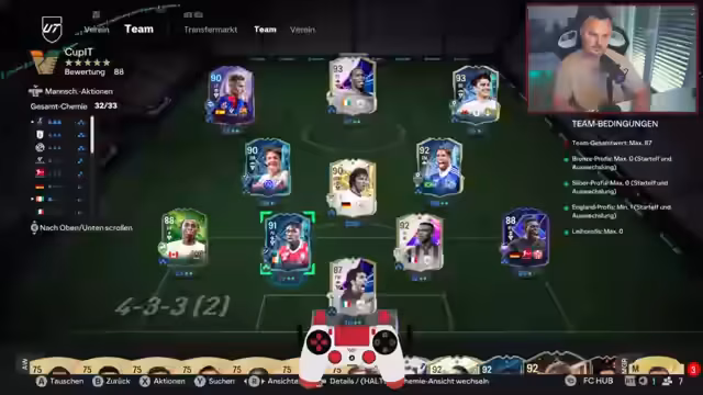 02:30:13Der Stream blickt voraus auf die anstehenden Team-of-the-Season (TOTS)-Veröffentlichungen. Es wird erwartet, dass das komplette Bundesliga-TOTS-Team bald geleakt wird. Der Streamer äußert, dass die Bundesliga-TOTS momental als 'ganz cool' eingestuft wird und Interesse an den kommenden Karten, insbesondere von Spielern wie Rüdiger, besteht. Bei den Premier-League-TOTS wird spekuliert, dass Spieler wie Harry Kane und Ollie Watkins sehr teuer werden könnten. Verschiedene SPCs und potenzielle Kombinationen für die TOTS-Teams werden diskutiert und auf ihre Spielbarkeit analysiert.