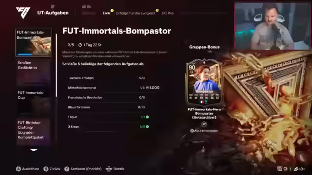 00:21:40Der Stream startet mit der Ankündigung des Live-Streams, der sich mit dem Spiel Barcelona gegen Borussia Dortmund und weiteren Evo-Inhalten beschäftigt. Zunächst werden mögliche Jobs und Ausbildungspfade im Bereich FIFA thematisiert. Der Streamer beginnt mit der Betrachtung einer neuen Evo-Karte des Spielers Arturo Vidal und zeigt die Entwicklung des Spielers auf. Er diskutiert die verschiedenen Spielstilen und Ratings, die für die Evolution relevant sind und gibt seine persönliche Meinung ab, dass es sich bei den aktuellen 89er-Karten möglicherweise noch nicht lohnt, sie sofort zu verbessern, da ein dritter Spielstil-Plus in Aussicht steht.