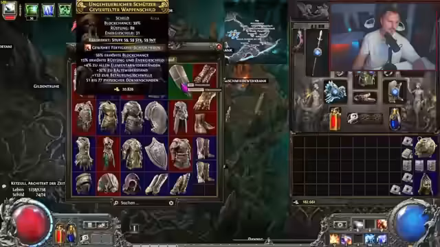04:03:04Der Streamer beginnt mit dem Ausbau seines Builds durch das "Shopping" von Ausrüstung und das Nutzen von Exalted Orbs. Er sortiert seinen Inventar aus und versucht, wichtige Gegenstände wie einen neuen Gürtel oder eine Brust zu finden. Er erwähnt seine 36 Spielstunden in der Season und seine Zeit beim Leveln, wobei er versucht, alle Maps aufzudecken.