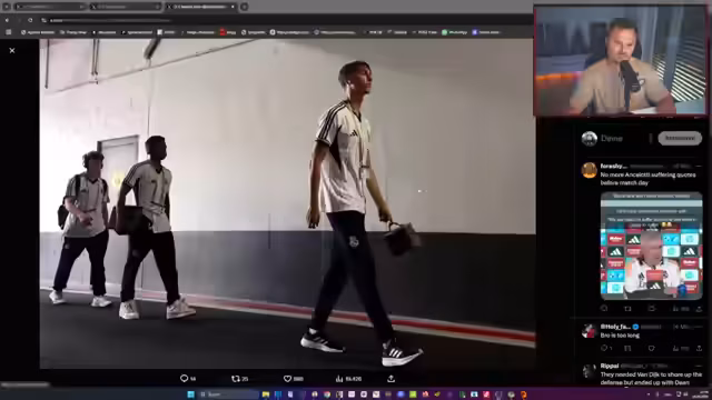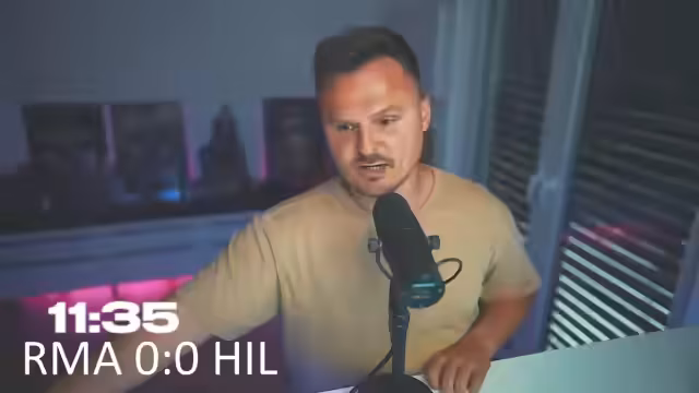 05:37:23In der Pause analysiert der Streamer die Taktik von Xabi Alonso. Die Umstellung auf ein 4-4-2 System mit Nächten als Rechtsverteidiger wird als sinnvoll betrachtet. Trotzdem kritisiert er das Fehlen eines kontrollierten Mittelfeldspiels und fehlende Abläufe im Aufbau. Die zweite Halbzeit begann mit einer taktischen Überraschung: die Umstellung auf eine 3er-Kette, wobei Asensio in die Innenverteidigung rückte.