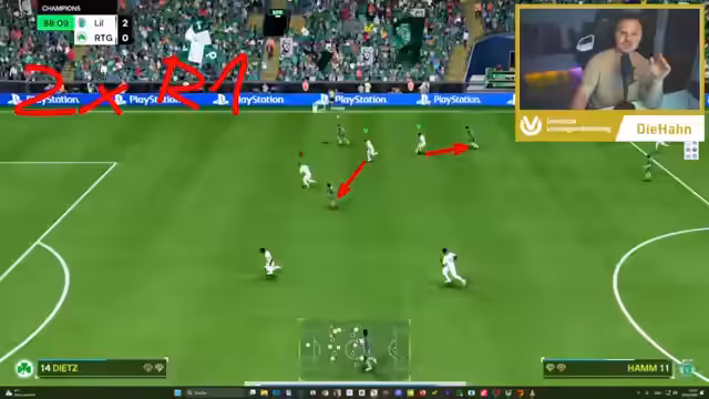 03:53:15Defensive Manöver und die Rolle der KI werden thematisiert. Die Funktion von Doppel-R1 wird erklärt, bei der zwei Spieler in Mannweckung gehen, um gegnerische Angriffe über die Seitenlinie zu verhindern. Der Streamer erwähnt, dass die KI dies erkennt und der Gegner dadurch in eine defensive Haltung gezwungen wird. Das Problem des passiven Verteidigens wird als sehr unangenehm für das eigene Spiel beschrieben.