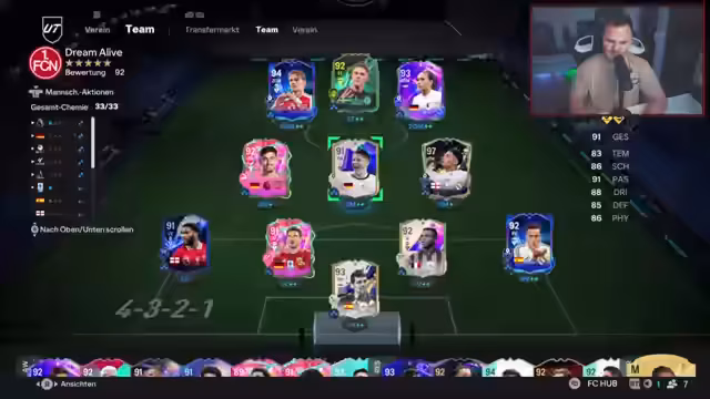 00:30:33Der Streamer testet den Spieler Gyökeres im Spiel und gibt ihm direkt das Maximum. Er spielt eine Partie und bemerkt, dass der Gegner Gerd Müller hat. Er stellt den Trainer ein und analysiert die Aufstellung. Er findet die Müller-Karte super, bemängelt aber, dass sie nicht aus dem Tritt kommt. Der Streamer empfindet das Gameplay als verzögert und die Verteidigung als lückenhaft. Er testet Kessler und ist unzufrieden mit ihrer Positionierung und dem Verhalten im Spiel. Bellingham wird als unbeweglich und mit schlechtem Dribbling kritisiert. Er experimentiert mit Anweisungen und Formationen, um das Spiel zu verbessern, ist aber insgesamt unzufrieden mit dem Gameplay und der Leistung seiner Spieler. Er gibt Bellingham auf und ersetzt ihn.