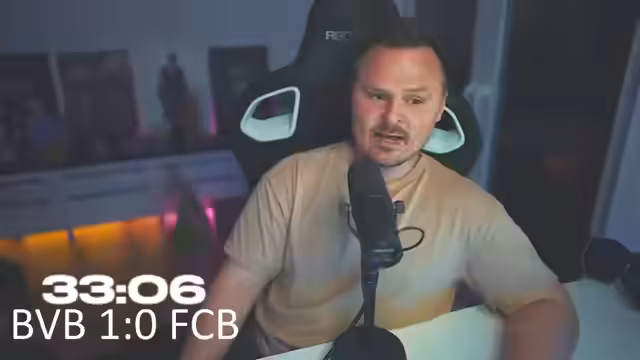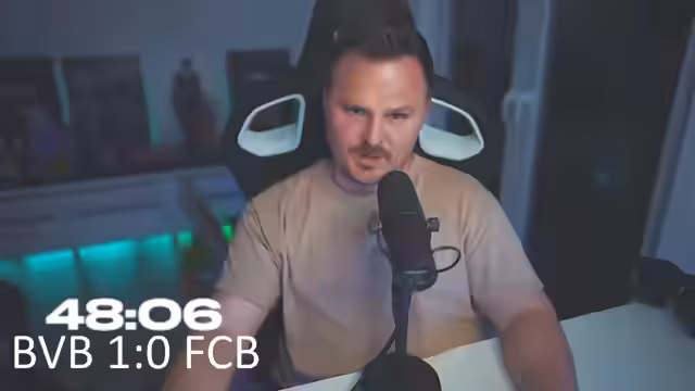 00:58:36Der Stream schwenkt auf einen Live-Watchalong der Champions-League-Partie zwischen Borussia Dortmund und dem FC Barcelona über. Der Streamer kommentiert das Spiel, analysiert die Spielzüge und kritisiert dabei auch Schiedsrichterentscheidungen. Er ist emotional mit Dortmund verbunden, da sein Vater und Großvater HSV-Fans waren. Er äußert sich zudem zu aktuellen Kontroversen im spanischen Fußball, insbesondere zur angeblichen Korruption in der La Liga und zu unterschiedlichen Behandlungen von Spielern wie Mbappé und MAP, was er als intransparent und unfair empfindet.