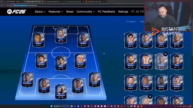 00:21:47Der Streamer startet mit Verspätung und thematisiert sofort die anstehende Team of the Year Ball. Es wird über fehlende Kandidaten wie Hakimi debattiert und die Auflistung von Spielern wie Lamine und Rafinha im Mittelfeld kritisiert. Die Diskussion dreht sich um die Wahlen für Messi und CR7, wobei der Streamer klar Messi favorisiert.