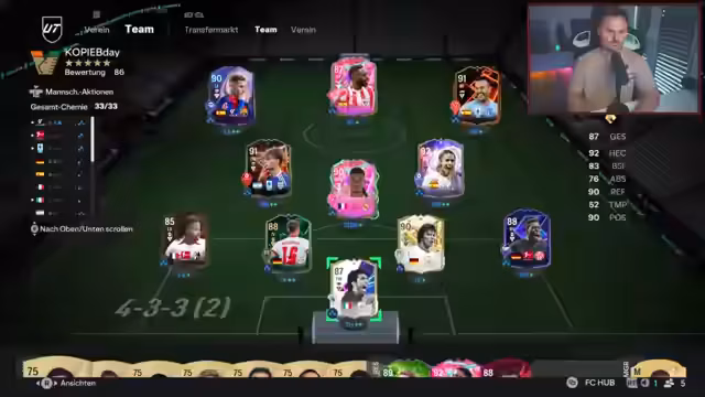 01:59:17Im Stream werden die potenziellen TOTS-Spieler für FIFA 24 diskutiert, wobei der Streamer die Qualität der Karten im Vergleich zum Vorjahr positiv bewertet. Insbesondere wird die Bedeutung von außergewöhnlichen Formationen betont, die jedoch auch Nachteile mit sich bringen. So kann bei der Verwendung bestimmter Formationen das eigene Team im Nachteil sein, da das Mittelfeld zu offen wird und man sich selbst behindert.