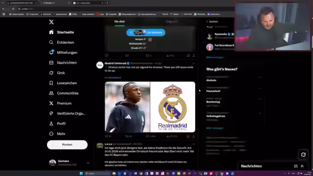 00:23:24Der Stream beginnt mit einer heftigen Kritik am DFB-Spielplan für den ersten Spieltag. Die Partie Bayern gegen Leipzig wird als international unattraktiv und für andere Mannschaften, insbesondere für Leipzig, als Schlag ins Gesicht empfunden. Gleichzeitig wird der Status von Nick Woltemade analysiert. Nach einer schwachen Phase in Bremen und anfänglichen Problemen in Stuttgart hat er sich als Stammspieler etabliert. Der Streamer betont, dass Woltemade ein talentierter Spieler ist, warnt aber vor einem zu frühen Wechsel und plädiert dafür, ihn bei Stuttgart weiterwachsen zu lassen, da er erst 23 ist und sein volles Potenzial noch nicht ausgeschöpft hat. Die aktuelle Situation bei Stuttgart wird als ideal für seine Entwicklung angesehen.