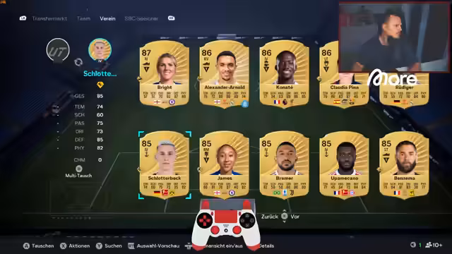 02:45:35Der Streamer startet mit der Präsentation seines aktuellen FIFA-Teams. Er wählt bewusst den Pelé aus, um zukünftige Mühe zu sparen und einen starken Spieler von Porto als Alternative zu behalten. Beim Durchgehen der Optionen wird er von einem Langas-Spieler begeistert, den er als eine Maschine auf dem Feld beschreibt, betont jedoch, dass dieser nur auf der rechten Seite optimal ist. Er erwähnt, dass er noch Playstyles aktivieren muss und ein Spieler mit langem Gas hat.