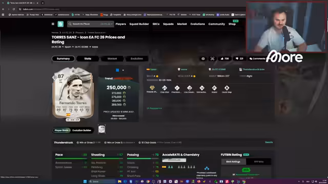 02:16:46Der Streamer hat die neue Torres-Karte noch nicht getestet, da er gerade aus dem Urlaub zurück ist. Er findet, dass das Upgrade der Karte etwas klein ist, aber der normale Torres sich bereits fantastisch spielt und weitere Upgrades erhalten könnte. Er fragt sich, ob Torres durch Liverpool oder Atletico repräsentiert wird, da Liverpool in dieser Hinsicht schwierig sein kann. Er überlegt, den Torres mitzunehmen, ist aber enttäuscht über ein Pack, das '3x84' und nicht die erwarteten '3x84er' enthielt. Er stellt fest, dass sich '82er bis 83er' in '85 bis 87 Upgrades' mehr lohnen. Er fragt die Zuschauer, ob die neuen Karten nur Playstyles oder auch Rating-Upgrades erhalten. Er ist frustriert über sein Pack-Pech und das Fehlen von 'Futter' für weitere Upgrades. Er glaubt, dass sie 'mit Michael Pick auf den Boden der Tatsachen geholt' wurden.