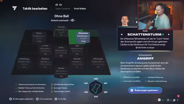 03:03:27Der Fokus liegt auf der Verbesserung des Gameplays. Nachdem er seine Grafikeinstellungen angepasst hat, beschreibt er, dass sich der Spielstil von Grisú "deutlich besser" anfühlt und endlich etwas Tempo hat. Er gibt Tipps für effektive Spielzüge, wie den Abfang (Intercept), der besonders bei defensiven Spielern stark ist. Abschließend bewertet er Petit als sehr schnell und betont, dass solche Eigenschaften entscheidend für den Spielfluss sind.