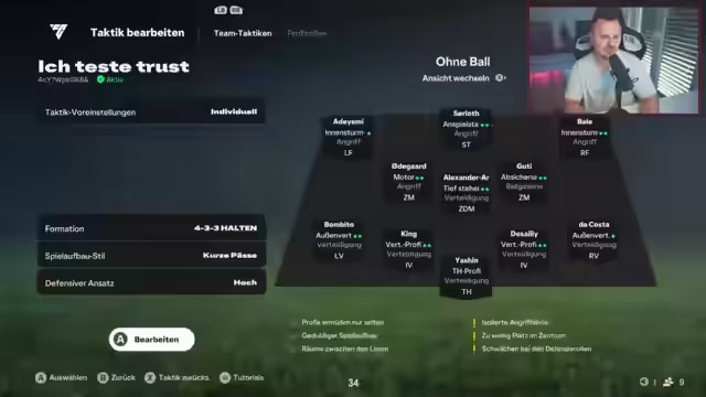 02:11:32Der Streamer äußert seine Frustration über den gegnerischen Spielstil, der konstant mit Stürmern wie Bale und CR7 in der Defensive agiert, was er als gestört und nicht nachvollziehbar empfindet. Er betont, dass er nur noch einen weiteren Sieg benötigt und das Spiel ihn zunehmend verärgert, da es wegeskaliert und keine Freude mehr bereitet. Insbesondere ein verlorener Kopfball Musialas gegen Kosta und die fehlenden Torchancen, wie ein verpasstes Kopfballtor von Bale, werden thematisiert.
