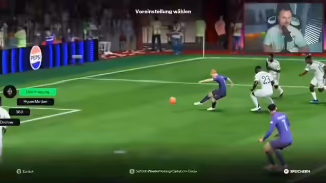 00:18:17Nachdem der Streamer noch keine Partie mit der neuen Evo absolviert hat, beginnt er das erste Spiel. Er testet den Sirlot auf der linken Sturmseite und gibt erste direkte Eindrücke zum Spielgefühl. Er stellt fest, dass der Spieler sich trotz seiner Größe sehr schnell anfühlt und dank seiner 99-Ballkontrolle den Ball sauber am Fuß behält. Der Streamer ist positiv überrascht, wie der Spieler im Spielauftritt wirkt, und äußert seine Freude über das ansprechende Design der Karte.