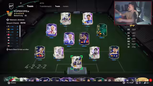 00:01:49Der Stream beginnt mit dem Rivals Grind, da die V-Server aktuell down sind. Es wird über die Aufstellung und Taktik in FIFA Ultimate Team diskutiert. Es werden vier Punkte für den maximalen Staff benötigt, was zwei Siegen entspricht. Es wird überlegt, ob es zwei Karten von Maradona geben wird und wie unbezahlbar diese in den Packs sein werden. Es wird spekuliert, ob man sich zwischen Beckenbauer und Maradona entscheiden kann. Der Streamer teilt seine Meinung zu den vielen Karten von Icons und verweist auf ein Video auf seinem YouTube-Kanal, in dem er seine Meinung dazu teilt. Es wird die Schwierigkeit des Spagats zwischen dem Wert der Icons und der Zugänglichkeit für alle Spieler diskutiert. Es wird die Frage aufgeworfen, was man mit einer 90er-Karte will, da der Gegner mit einem 89er Bellingham erfolgreich spielt. Die Problematik der Leaks in Bezug auf die Erwartungen an neue Karten wird angesprochen.