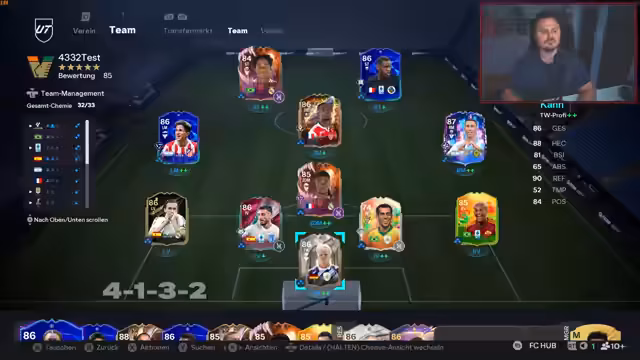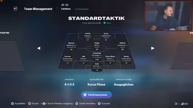 02:17:52Der Streamer nimmt Anpassungen an seiner Teamformation und den Spielerrollen vor, um die Offensive zu stärken und gleichzeitig die Defensive zu stabilisieren. Er experimentiert mit der Rolle 'Maestro' für einen Spieler, um dessen Ballkontrolle, Dribbling und Stellungspiel zu verbessern. Da seine beiden zentralen Mittelfeldspieler (ZM) sehr offensiv ausgerichtet sind, überlegt er, einen von ihnen auf 'Absicherung' zu stellen, um eine bessere Balance zu gewährleisten. Die aktuelle Promo wird als 'lieblos' empfunden, obwohl der Streamer sie selbst als 'okay' bezeichnet. Er plant nach der aktuellen Partie weitere Änderungen. Während des Spiels äußert er Frustration über die 4-5-1 Formation des Gegners, die für seinen zentrumsbetonten Spielstil besonders schwierig ist. Er lobt die Leistung bestimmter Spieler wie Inez mit Tiki-Taka und Pass-Playstyles, die trotz der defensiven Gegnerformation gute Aktionen ermöglichen.