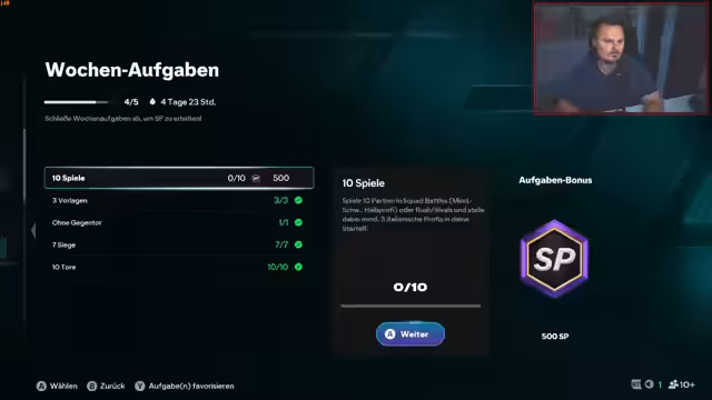 00:32:06Es wird über den XP-Grind und die verfügbaren SBCs (Squad Building Challenges) gesprochen, insbesondere über Packs, die garantierte 83+ oder 85+ Spieler sowie Basis-Helden enthalten. Die Menge an XP, die man in der Karriere erhalten kann, wird als 'krank' bezeichnet. Es wird auch die Sinnhaftigkeit dieser Packs hinterfragt, da viele Items untradeable sind. Die Diskussion geht weiter zu spezifischen Aufgaben und Kampagnen, wie 'Rush' und 'Seitlinientempo', die neue Evolutionen für Rechtsverteidiger ermöglichen. Es wird bedauert, dass bestimmte Spieler wie Enric nicht für diese Evolutionen in Frage kommen, da sie bereits zu viele Playstyles besitzen. Die allgemeine Stimmung ist, dass es derzeit an interessanten SBCs mangelt.