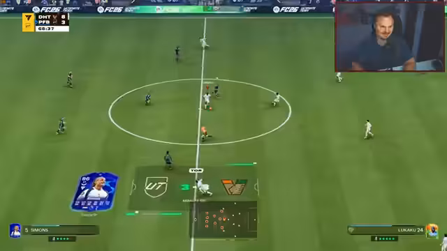 00:37:32Die 4-2-2-2 Formation wird nach einem Patch erneut getestet, wobei der Streamer seine Enttäuschung über die Leistung einiger Spieler, insbesondere Pogba, zum Ausdruck bringt, der trotz 'Schattensturm'-Anweisung im 'Nirgendwo' agiert. Es wird die Möglichkeit diskutiert, Carlos Alberto mit 'Quickstep' in Silber zu versehen und wie bestimmte Spieler in Evolutionen ohne Rating-Boosts gepackt werden können. Die Problematik der 'Rebounds' im Spiel wird hervorgehoben, da der Ball oft zum Gegner zurückprallt. Die Formation wird als 'maximal tot' empfunden, und es wird die Notwendigkeit betont, eine neue Taktik zu finden, da das Tempo einiger Spieler, wie Bonny, trotz hoher Pace-Werte als unzureichend empfunden wird. Die schlechte Positionierung von Bonny und die allgemeine Schwäche der 'Lengthy'-Spieler in diesem Jahr werden kritisiert.