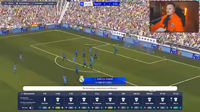 04:34:29Ein technisches Problem wird thematisiert, bei dem die MAP nicht korrekt funktioniert. Dies führt zu Frust beim Streamer, der betont, dass er den Gegner trotzdem besiegt und sich über den Ausgang ärgert. Gleichzeitig gibt es kritische Situationen im Spiel, wie ein Foul an Vinicius Junior, das für Unruhe sorgt, und der Taktik wird mit Wechseln experimentiert.