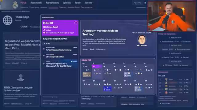 01:21:38Die anfängliche Spielanalyse konzentriert sich auf die Leistung einzelner Spieler, insbesondere Arda Güler, der als Magic Arda bezeichnet wird und durch Torbeteiligungen auffällt. Der Streamer diskutiert strategische Wechsel, wie den Einsatz von Gonzalo für Mbappé und die Positionierung von Carreras. Es werden auch Verletzungsprobleme angesprochen, die die personellen Optionen einschränken, und die defensive Leistung der Mannschaft als wackelig beschrieben. Die hohe Anzahl an Schüssen des Gegners und die geringere Torausbeute werden als Problem identifiziert, wobei die Motivation der Spieler in Frage gestellt wird.