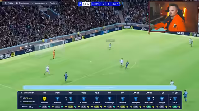 04:54:23Nach dem deutlichen Sieg gegen Malmö analysiert der Streamer die Leistung der Mannschaft. Er lobt insbesondere Ederson Militao und Antonio Rüdiger für ihre konstante Weltklasseleistung. Gleichzeitig diskutiert er die Talente im Kader und weist darauf hin, dass der aktuelle Fokus auf der Nutzung der Qualität der etablierten Spieler liegt, anstatt in junge Talente zu investieren.