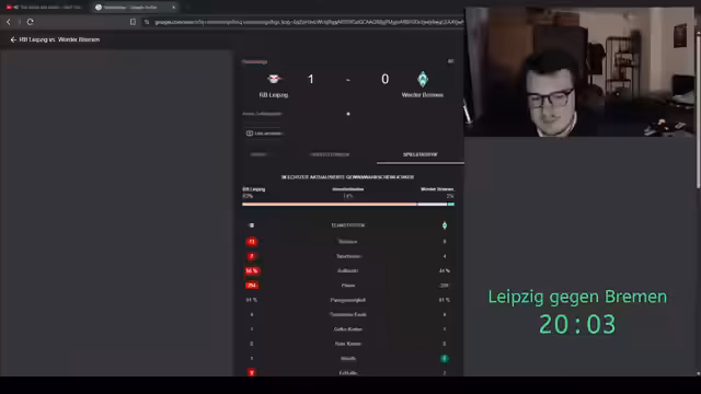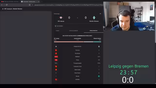 03:58:39Der Streamer kommentiert das laufende Spiel zwischen Bremen und Leipzig und analysiert taktische Entscheidungen. Er kritisiert Fehler im Aufbauspiel und äußert sich über die Spielweise von Bremen. Auch Diskussionen über Stadionüberwachung und das Verhalten der Fans finden statt. Die Trikotdesigns von Bremen werden positiv bewertet. Der Streamer zeigt sich mit der Defensive von Brieden zufrieden, bemängelt aber das offensive Spiel.