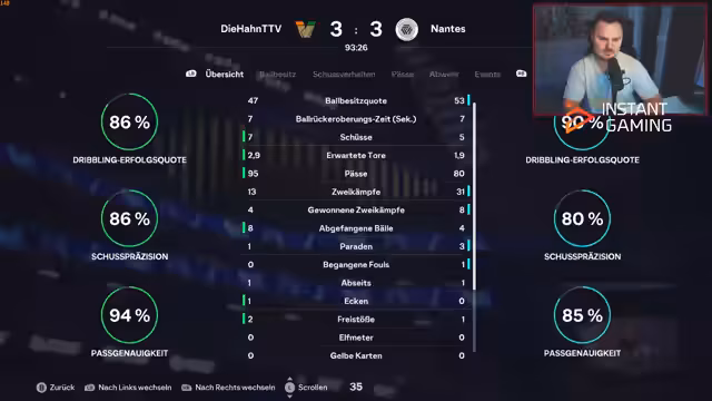 00:30:45Später im Stream berichtet er über ein spannendes Spiel, bei dem er mehrfach Monsterparaden und überragende Reaktionen von Spielern wie Donnarumma erlebt. Er hebt insbesondere hervor, dass das Team von City stark behindert wird und er trotzspieler beeindruckt ist, während er gleichzeitig über verschiedene Spieler‑Evaluationen und deren Impact auf das Gameplay spricht.