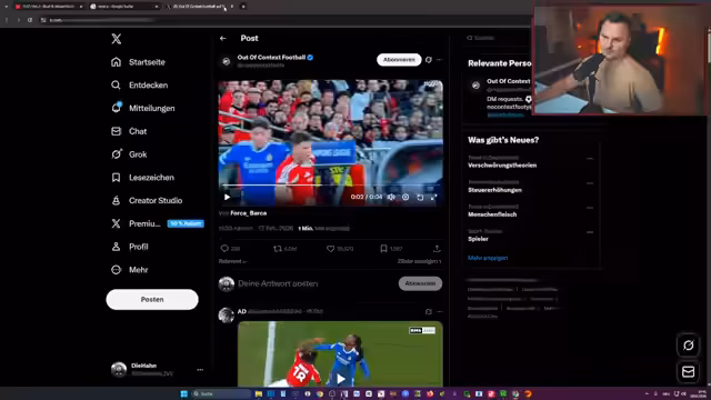 05:14:21Der Streamer äußert sich über die strategische Bedeutung von offensivstarken Außenverteidigern, deren Scorer-Qualität für ein Team unbezahlbar sei. Er prognostiziert hohen Erfolgspotenzial für bestimmte Spieler bei Real Madrid. Beim Betrachten eines Spiels stellt er eine umstrittene Schiedsrichterentscheidung fest und analysiert die Handlung des spielers im Anschluss eingehend. Er kommt zu dem Schluss, dass es um einen Schwanenfall ging, eine Theatereinlage, und kritisiert die Geste des Spielers gegenüber der Kamera.