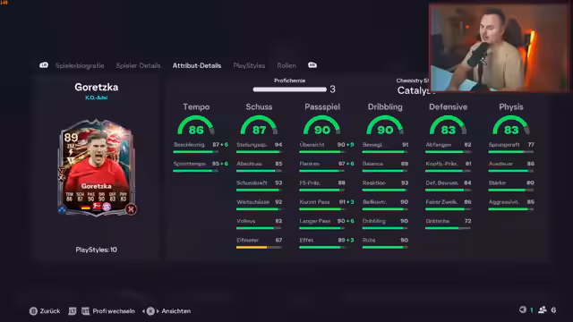01:29:12Der Streamer widmet sich den verschiedenen SBCs (Squad Building Challenges) im Spiel. Er stellt die "Masantono"-Karte in den Fokus und ist verwundert, warum viele Spieler hinter der teureren "Inside Edge"-Evo herjagen. Er vergleicht die beiden Karten und kommt zu dem Schluss, dass die "Inside Edge"-Evo trotz des höheren Preises ein besseres Gesamtpaket bietet. Auch werden andere Spieler wie der 88er Totti und die 91er Kuretzka kurz erwähnt.