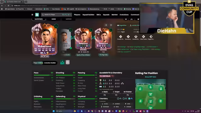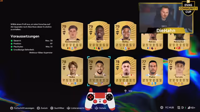 00:26:59Es wird über Spieler-Upgrades und Evolutions in FIFA gesprochen, insbesondere über Cavani, der ein +1 Upgrade erhalten hat. Die Evo wird als „cooler“ beschrieben, obwohl das Design mit dem Grün als „scheiße“ empfunden wird. Weitere Spieler wie Gonzalez, Shaqiri und Bailey werden hinsichtlich ihrer Stats und Playstyles analysiert. Sade-Maker und Gabriel Saar werden ebenfalls erwähnt, wobei letzterer mit Playstyles wie Quickstep, Raserei, Press Proven und Tiki Taka als „actually stabil“ eingestuft wird. Die allgemeine Meinung ist, dass die aktuellen Evos besser sind als die der Vergangenheit, obwohl einige Spieler als „dürftig“ oder „schwierig“ bezeichnet werden.