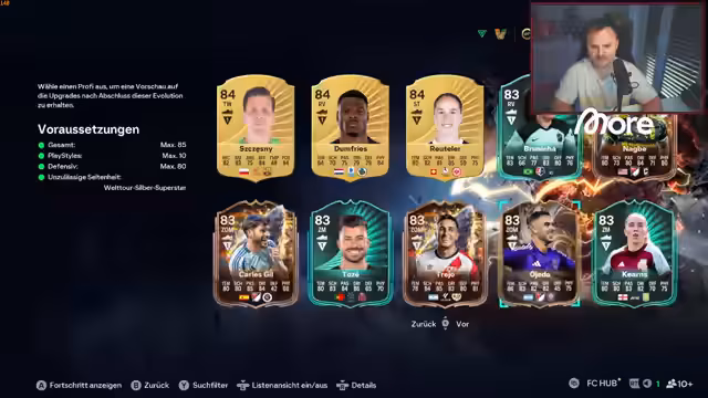 00:59:01Die Optimierung von Spieler-Evos steht im Vordergrund, insbesondere für Endrick und Boateng. Es wird überlegt, Endrick die Pass-Evo zu geben, während Boatengs Pässe bereits als fantastisch empfunden werden, obwohl seine Pass-Stats nicht hoch sind. Die Karte von Boateng wird als „geisteskrank“ beschrieben, da sie trotz niedrigerer Werte eine hervorragende Leistung zeigt. Die Möglichkeit, Boateng durch verschiedene Evos auf ein 82er-Rating mit beeindruckenden Stats zu bringen, wird diskutiert, wobei jedoch die Notwendigkeit von Pass-Skills in Frage gestellt wird. Es wird auch die Frage aufgeworfen, ob bestimmte Playstyles wie Quickstep oder Trickster für Spieler wie Jensen oder Boateng von Vorteil wären. Die Frustration über die Ausdauer von Spielern wie Kroos und die Schwierigkeit, eine enge Raute zu spielen, wenn die Mittelfeldspieler nicht über den Allrounder-Playstyle verfügen, wird deutlich. Die Suche nach der optimalen Balance zwischen Stats, Playstyles und Spielbarkeit bleibt ein zentrales Thema.