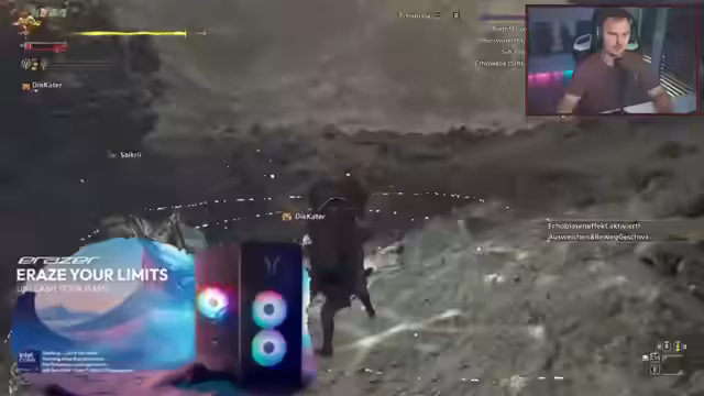 02:10:19Der Streamer startet eine Quest und sammelt Materialien wie Rohhonig ein. Die Spielwelt wird erkundet, und es werden verschiedene Ressourcen wie Fulgurit und Windquartz entdeckt. Es werden Ceratonoth-Herden beobachtet und die grafische Qualität des Spiels mit Kingdom Come Deliverance 2 verglichen, wobei erstere als weniger beeindruckend empfunden wird. Der Fokus liegt auf der Erkundung neuer Monster und Gebiete. Der Streamer nimmt eine Verbündungsgruppeneinladung an und sammelt Honig ein. Es wird ein Dorf entdeckt, und der Streamer interagiert mit NPCs. Ein Kampf gegen Monster beginnt, und verschiedene Strategien werden ausprobiert. Der Streamer nutzt Tränke und Buffs, um den Kampf zu überstehen. Die Waffe wird als "super nice" gelobt, während die Performance weiterhin kritisiert wird. Es wird die Aktivierung von Frame Generation diskutiert, um die Framerate zu verbessern. Nach dem Kampf werden Belohnungen eingesammelt und die Möglichkeit zur Verbesserung der Ausrüstung erkundet.