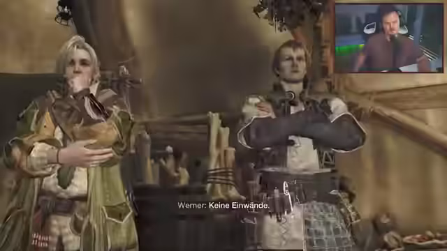 01:33:03Nach dem Tutorial wird die erste offizielle Quest in Angriff genommen. Der Streamer erkundet das Basislager, das verschiedene Einrichtungen wie die Schmiede, den Werkstattbereich und den Trainingsplatz bietet. Er beginnt, Materialien zu sammeln und Waffen zu schärfen, während er in Gesprächen mit den NPCs die Geschichte über die 'Weißen Geist' und die 'Hüter' erfährt. Er stellt die deutschen Sprechleistungen als hochwertig heraus und zeigt sich beeindruckt vom Umfang des Spiels.